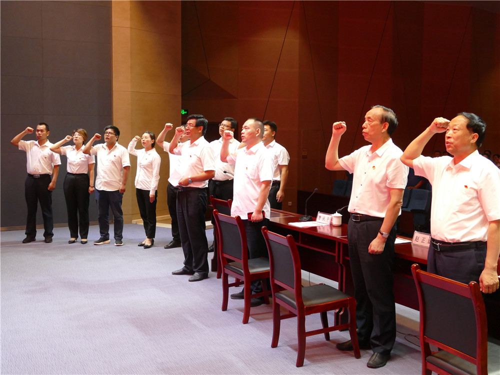 大會在雄壯的國歌聲中拉開序幕。首先公司黨委委員、副總經(jīng)理郭日倉作了《黨委工作報告》。報告總結(jié)了過去一年來的黨建工作,指出了黨建工作存在的不足,并提出了下一步工作的努力方向。公司黨委委員、鑄鍛公司副總經(jīng)理曹慶平宣讀《關(guān)于表彰2019年度優(yōu)秀共產(chǎn)黨員的決定》。大會為2019年度在公司各條戰(zhàn)線涌現(xiàn)出的10名優(yōu)秀黨員頒發(fā)榮譽證書;接著舉行新黨員入黨宣誓和老黨員重溫入黨誓詞儀式,全體黨員舉起右手,握緊拳頭,面向黨旗,莊嚴宣誓“我志愿加入中國共產(chǎn)黨,擁護黨的綱領(lǐng),遵守黨的章程……”,錚錚誓詞響徹會議室。