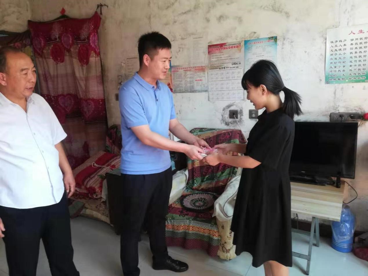 金秋將至,又是莘莘學(xué)子收獲的季節(jié),為進(jìn)一步弘揚(yáng)重視教育、尊重知識、鼓勵成才的社會風(fēng)氣,幫助貧困大學(xué)生順利進(jìn)入大學(xué)校園。 8月31日,公司總經(jīng)理助理曲笑輝,工會主席路建存在申村黨支部書記郭慶法的陪同下,深入申村貧困家庭郭亭于家中,將8000元助學(xué)金送到利用高考結(jié)束的空閑時間剛剛打工回來的郭亭于手中。