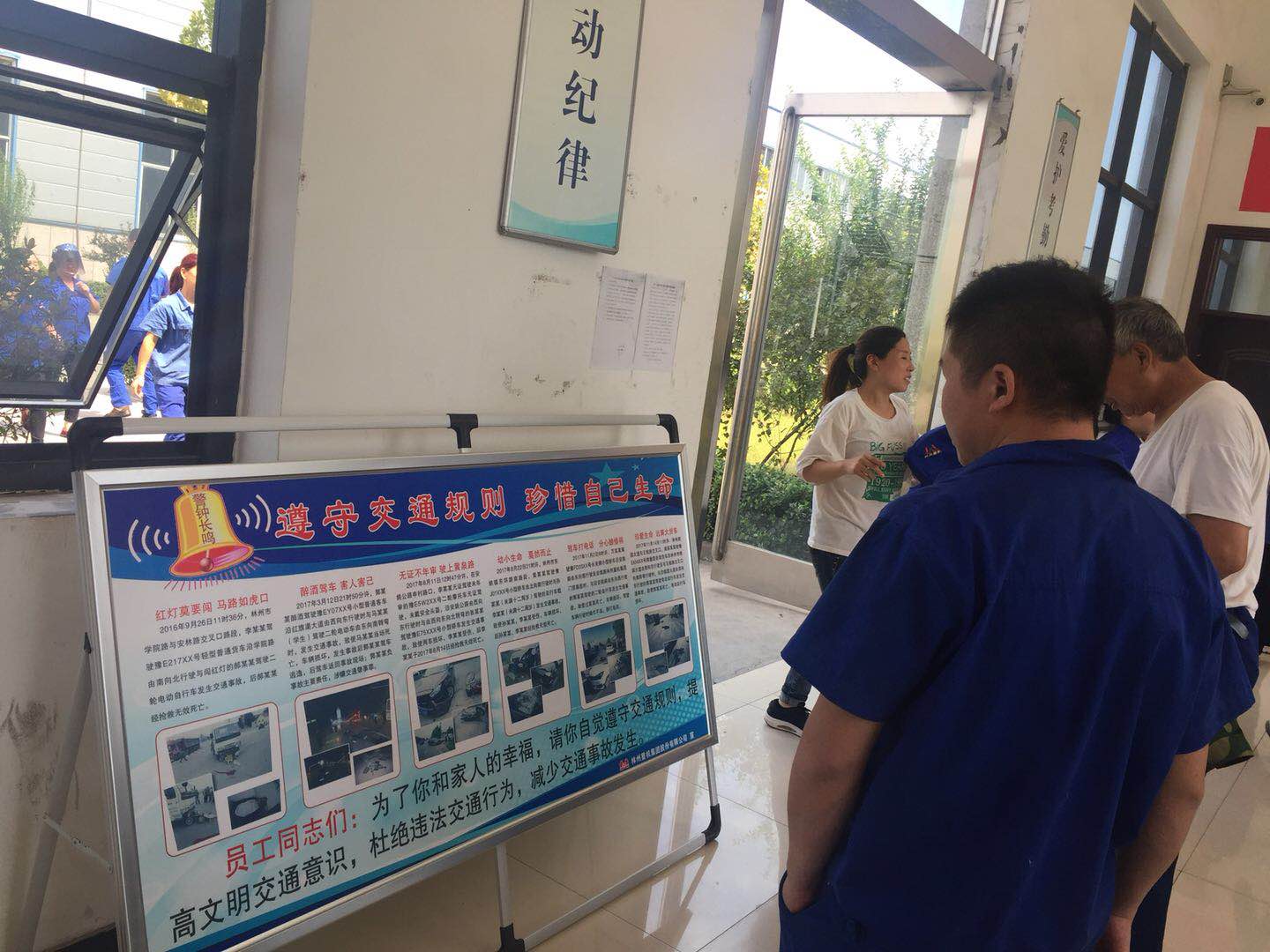 其次,公司加大宣傳力度。在公司門口、考勤室等地擺放交通安全宣傳版面,懸掛交通安全條幅,并不間斷地播放交通宣傳教育口號,提醒廣大員工上下班時刻注意交通安全,提高交通安全意識,自覺遵守交通規(guī)則。同時,要求各單位利用班前會、工作例會、車間版面及微信平臺等多種形式,對本單位員工進行交通安全教育,做到交通安全教育工作常態(tài)化、制度化。